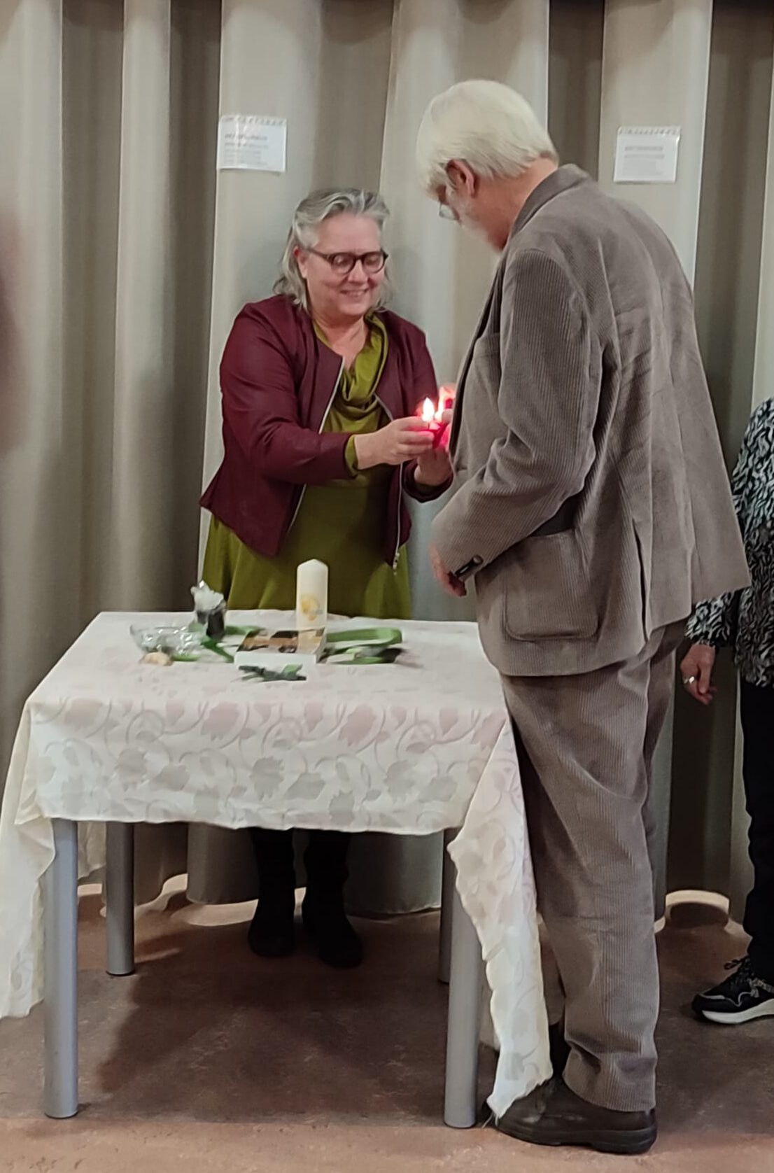 Peetvader Hein Stufkens en Boeken-vroedvrouw Yoeke Nagel, presenteren en zegenen mijn boek, nadat ze mij 5 jaar hebben begeleid naar haar geboorte.