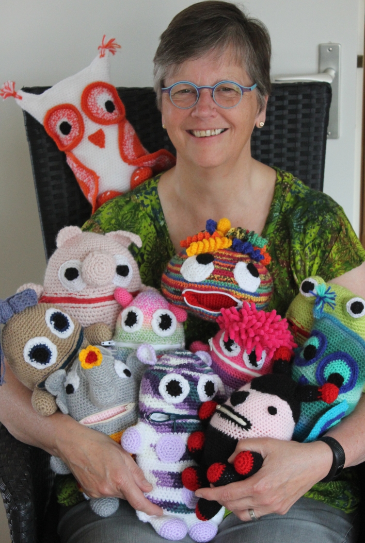 Ik wilde voor haar een poppetje haken wat haar troost kon bieden. Dat werd Yasmin, mijn eerste zelf gehaakte troostvriendinnetje. Yasmin bewaart in haar mond fotootjes van Yaqout en haar vader.